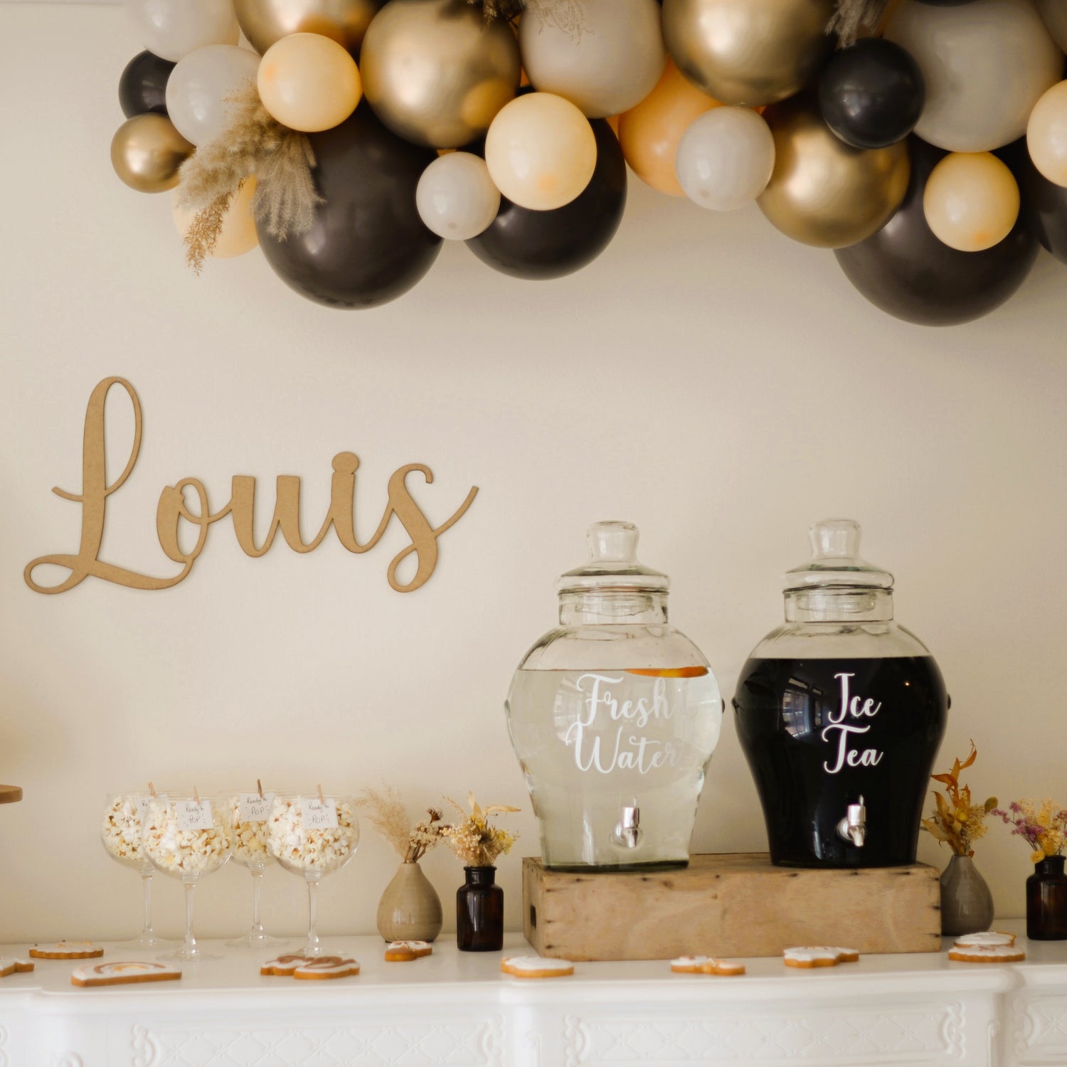 Sticker ou découpe prénom, papeterie, cadeaux invités.. Nous pouvons créer la décoration selon le thème de votre client.