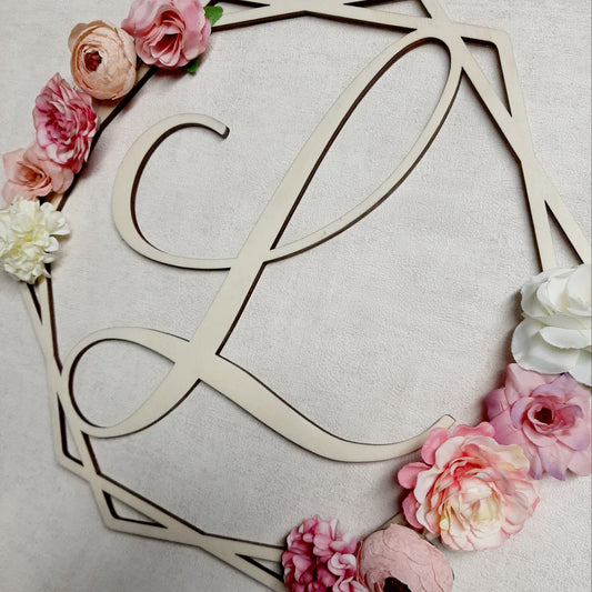 Couronne hexagonale prénom fleurie en bois